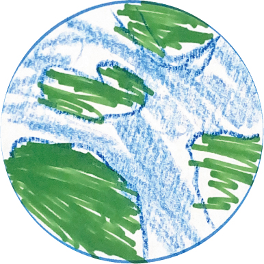 そんな海が大好きな子どもたちでも、広い海には、まだまだ知らないことがたくさんあります。そこでワークショップの導入として、「地球には海がどれくらいあるのか?」をテーマに、みんなで想像しながら考える時間を設けました。紙に円が描かれたワークシートに、思い思いに“海の広さ”を表現してもらうワークです。
