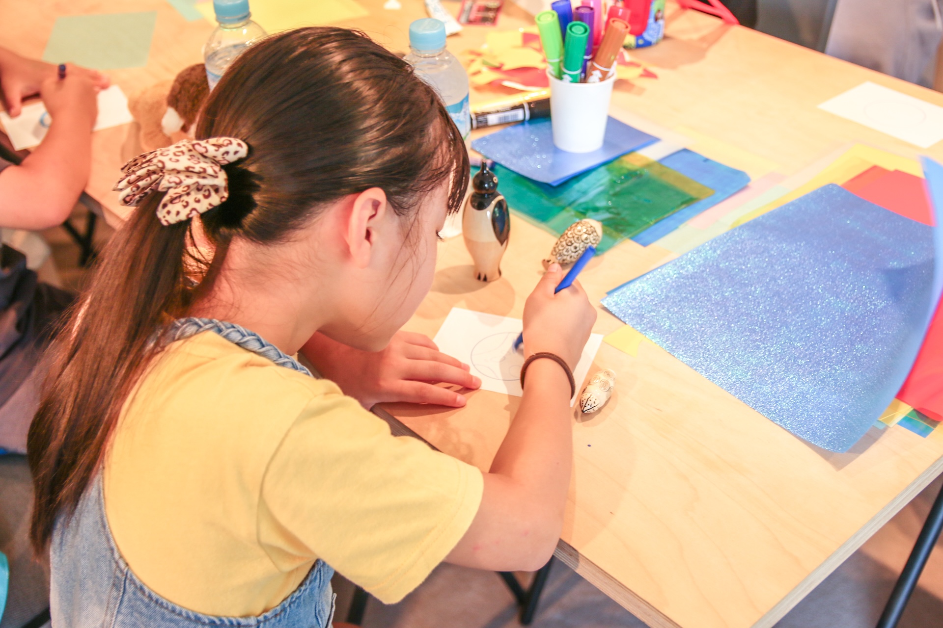 ワークシートと青いペンを用意していたのですが、子どもたちからは「陸地を描くために緑のペンがほしい」「字を書くために黒いペンもあるといい」など、私たちの想像を超えるリクエストの声が次々と上がりました。