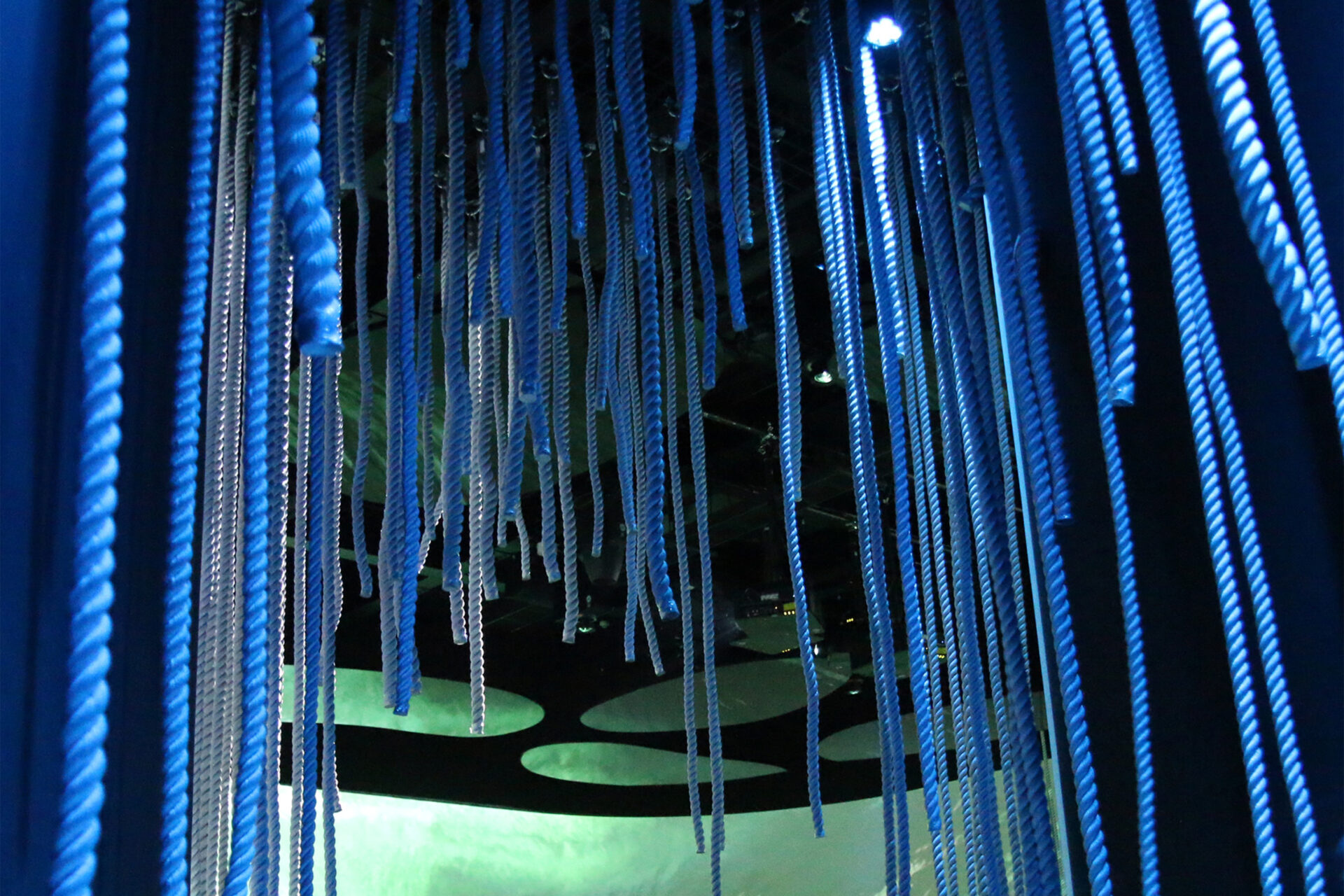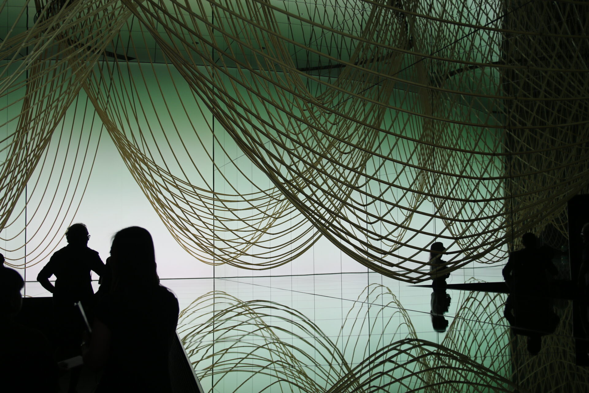 建築家・隈研吾氏が担当したポルトガル館の建築は、ブルーグレーの大型ロープを多用した建造物で、自然との境を融合することを試みたといいます。建築を囲いながらも透けるように外界とつながり、まるで海風に揺れる波間を歩いているような感覚を生み出します。その空間に身を置くと、海に開かれながらも、どこまでを自分の世界と呼べるのかという身体的な問いも生まれました。
