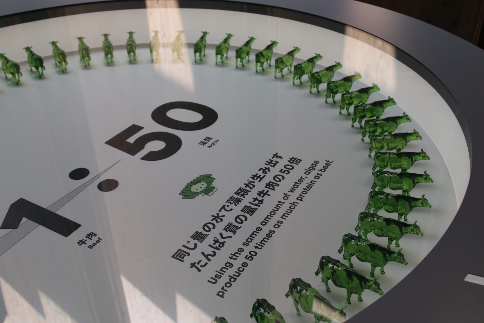 その奥では、微細藻類を活用したバイオ燃料や、食品の研究の展示が続きます。日照時間が長く、多様な種の藻が育つスペインでは、藻類を新たな産業として位置付け、持続可能な暮らしへ結びつけようとしています。環境保全と地域経済の発展を同時に目指す姿勢を持ち、同じく微細藻類に焦点を当てたプロジェクトを行なっているwe+として、強く共感したパビリオンでした。