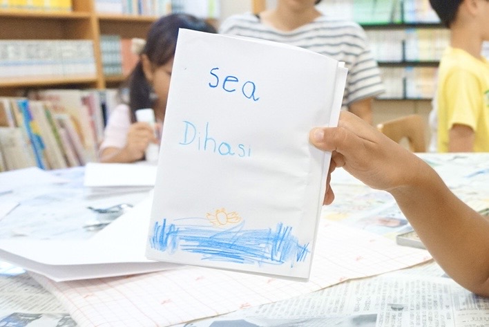 絵の具を垂らしたり、滲ませたりしながら絵本作りを楽しんでいました。参加していた小学生は「きれいな海を泳ぐのが好きなので、思い出の家族で泳いだ海の絵を描いてみた」と話していたそうです。